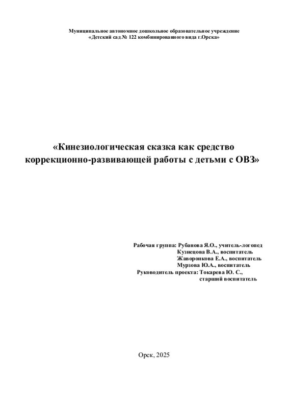 Руководитель проекта: Токарева Юлия Сергеевна, старший воспитатель МАДОУ № 122.