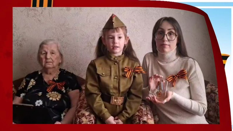В рамках акции "Неугасима память поколений" прабабушка Валентина Семеновна, дедушка Сергей Васильевич, бабушка Светлана Васильевна, мама Екатерина Сергеевна, сын Василий и дочь Ксения читают стихотворение Валентина Берестова "Как тяжело, когда идет война".